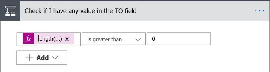Now that we have a trigger, let’s check the people that are in the TO field. To do it, we’ll use the length function in a” Condition” action.