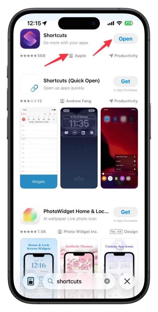 If you haven’t done it yet, please go to the App Store on your phone and search for “Shortcuts,” or use this link .