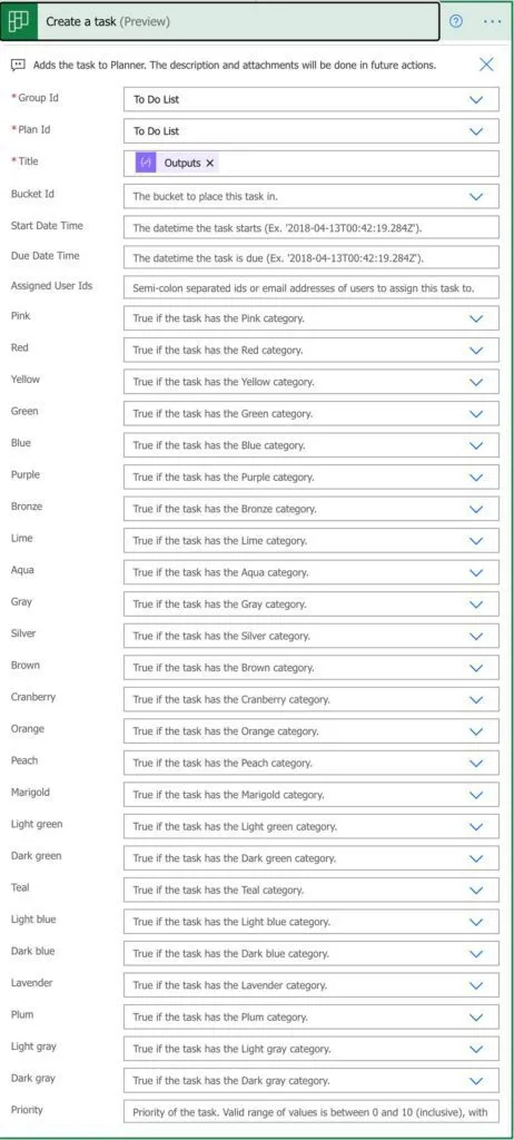 With this final step Power Automate will add attachments to Microsoft Planner, if they exist.