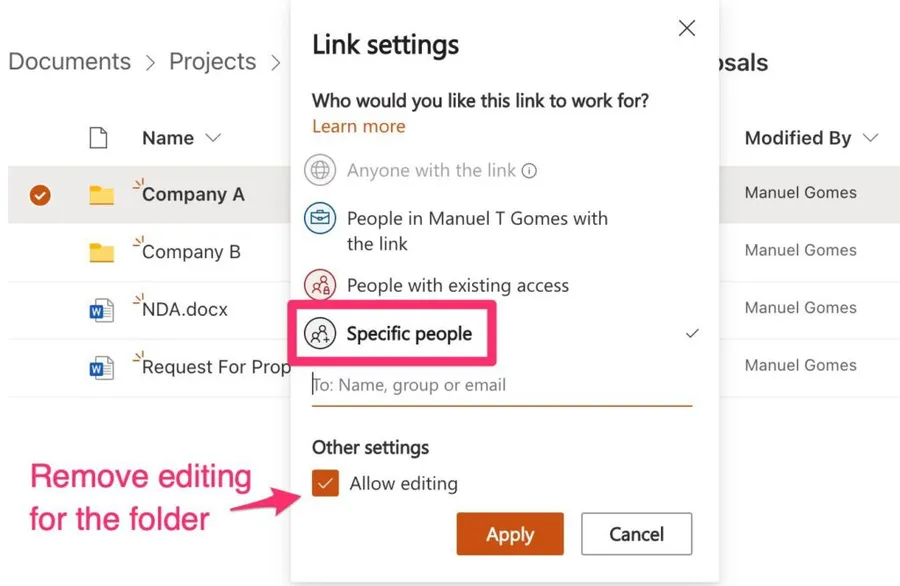 - No documents on emails. Only links. When you send the information to the providers, you don’t send attached documents. You send a link to the company folder inside the project. All documentation is managed there.