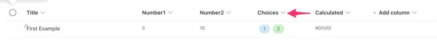 Now let’s try with a choice column. We can have numbers in it so we can try to do the average of all of the selected ones, with the following formula: