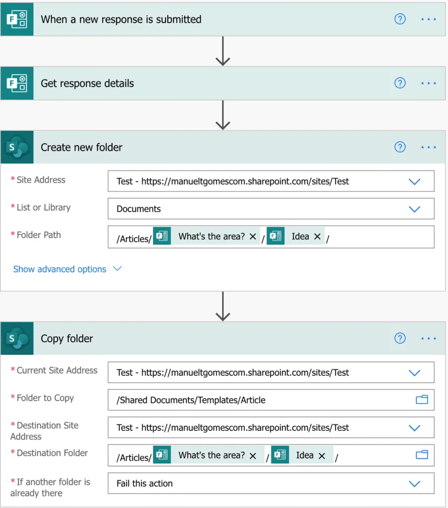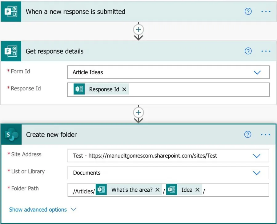 - Have a central place that collects that information and creates the folder for you. In our case, a Power Automate is ideal for this.