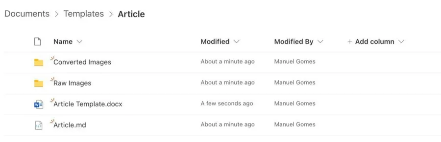 - If you’re using markdown, you can have a "template.md" or a word file with the skeleton of your article.