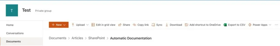 Like I mentioned before, one of the essential concepts about automatic documentation is to have only one place for your information. You can have multiple tools but have only one place for each topic. For example, you can have Microsoft Teams for the “temporary” documents and collaboration, a SharePoint Communication Site for the “public” final documents, and a SharePoint Team Site for the “private” final documents.