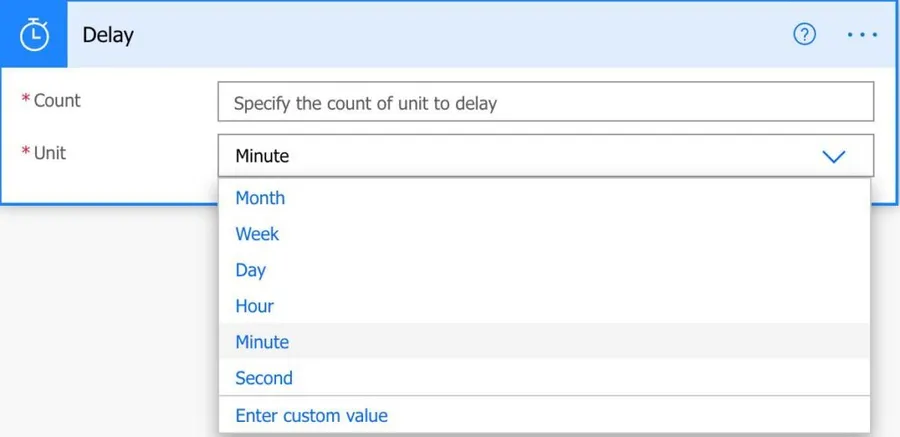I think Microsoft included the “Month” option for the sake of completion, but you should never use it. Flows have a 30 days max runtime, so after that time, regardless of what step you are, the Flow will timeout. So defining anything above that time will never be executed.