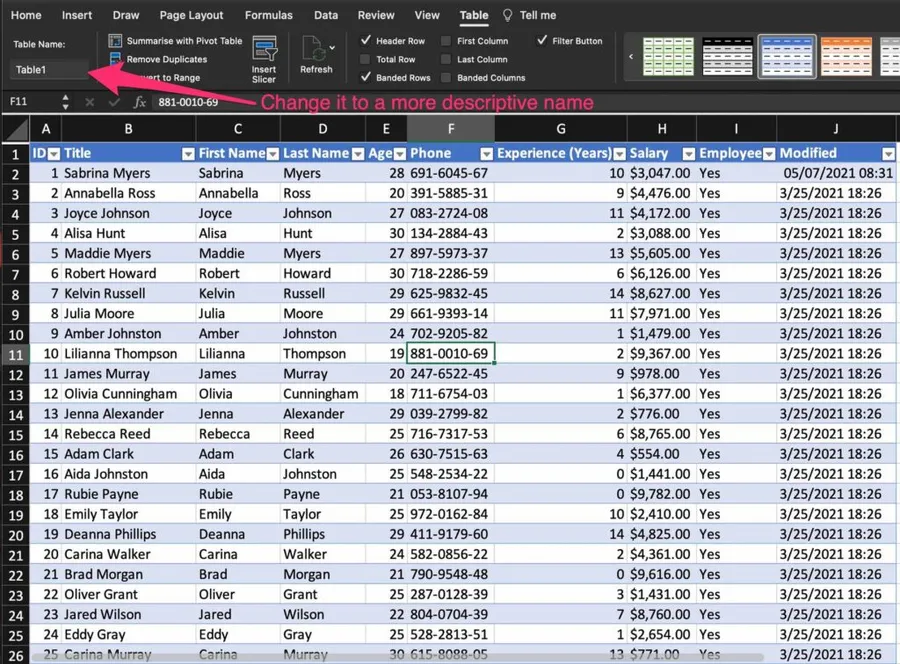 [su_panel text_align="center" radius="10" background="#D6DAC2" border="1px solid #E7E7E7"]I always recommend changing the name of the table since you’ll use it in Flow a lot. Also, if you have several tables in the same file, it’s much easier to understand “TestUsers” than “Table 4”.[/su_panel]