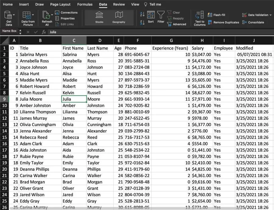 Before we start, it's important to note that Power Automate requires that the information is inside a table in Excel. There are multiple reasons why Microsoft did this, but the most important is that Excel files are a "sandbox" for us to play, and Power Automate needs an identifier to understand what data we want. Also, it makes it easier to insert, update and delete columns.