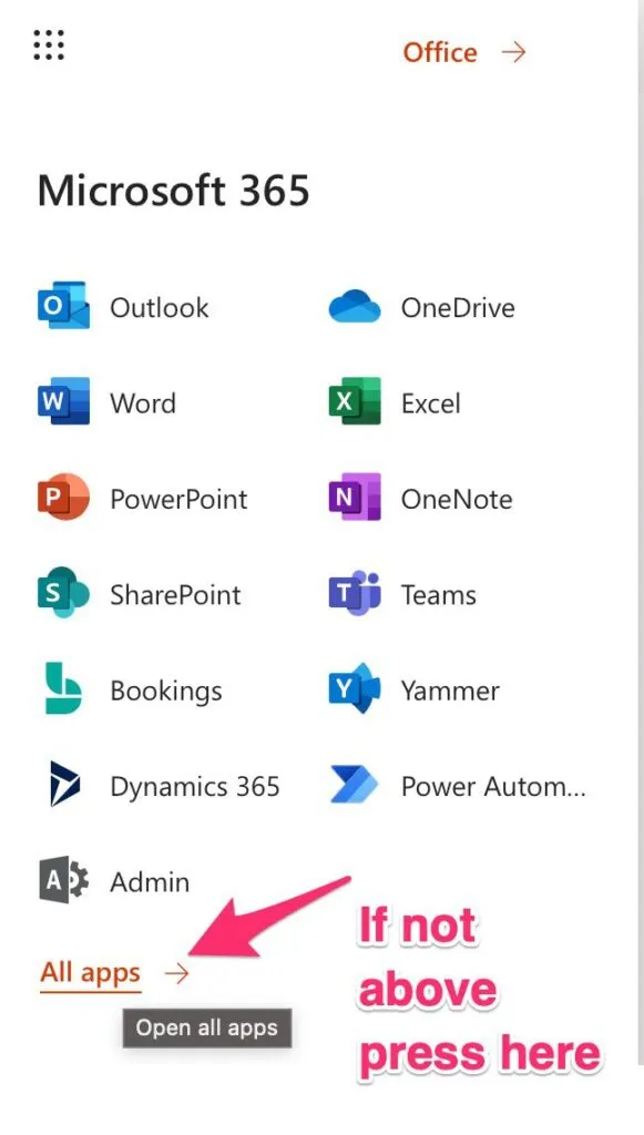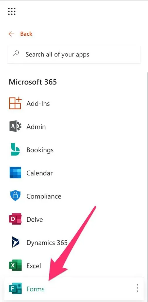 If you don’t see Microsoft Forms immediately, click “All Apps.”