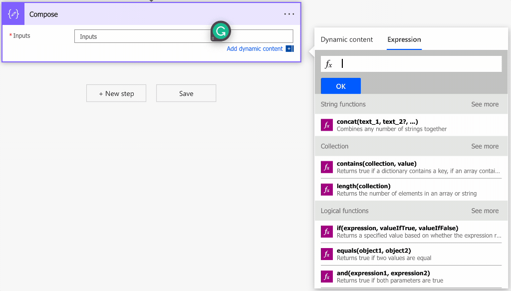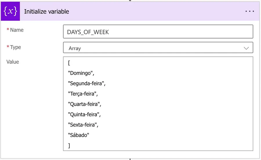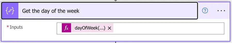 Now that we have the day of the week, let’s transform it to a weekday. To do that, we can use Power Automate’s functionality to have an array and provide the index where we want to fetch the information.