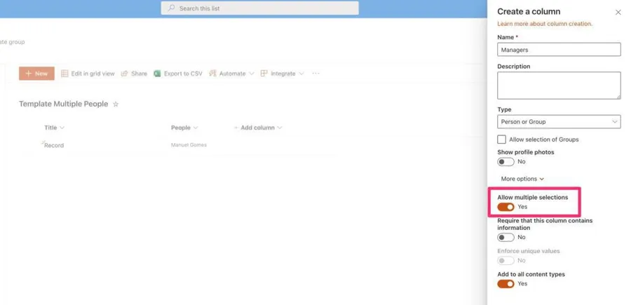 Here’s an example. I will add another person column with the same structure, but now called “Managers.”