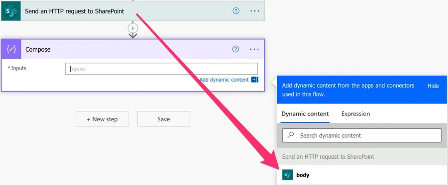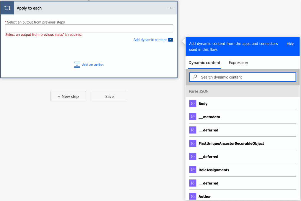 There are no fields. This is because we’re sending a dynamic request to SharePoint , so Power Automate doesn’t know what to expect before it runs the Flow. We need to generate a definition that we can use, so we need to use the “Parse JSON” action that will get any JSON returned and create a schema that we can use. If you don’t know what a schema is, don’t worry, I have you covered in this article.