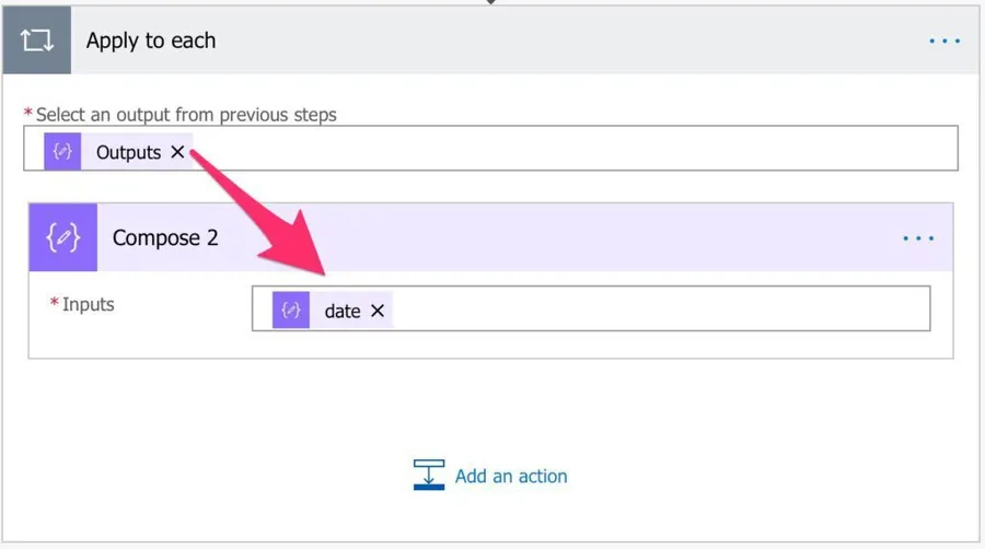 And then, we can do a simple “Apply to each” to get the items we want by reference. Looks nice.