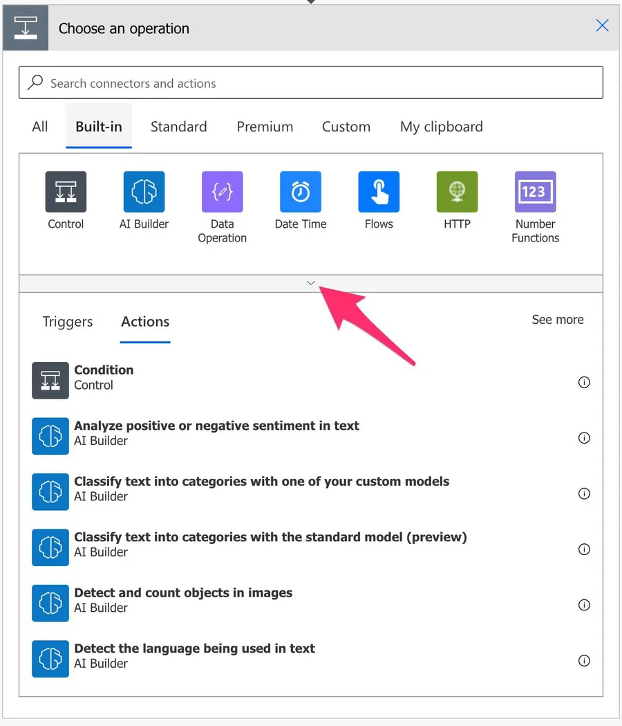 Power Automate tends to save the most common actions in the main screen, so check there before going through the full hierarchy. Also, you can use the search to find it quickly. [/su_panel]