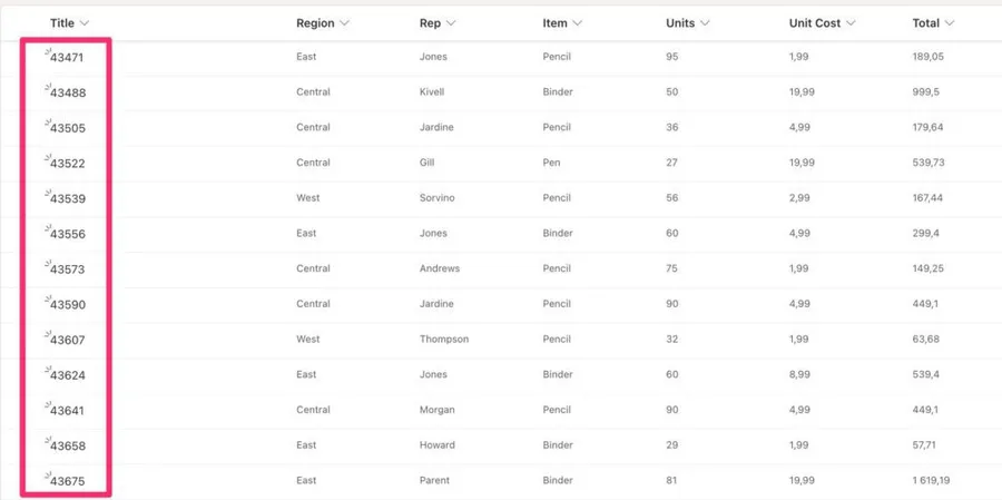 Notice that I left the date to be imported in the “Title” field. Since the date is stored in Excel as a number and the title is a text field, the data is converted and stored as you see above. I wanted to import it like this to show you how things can go wrong.