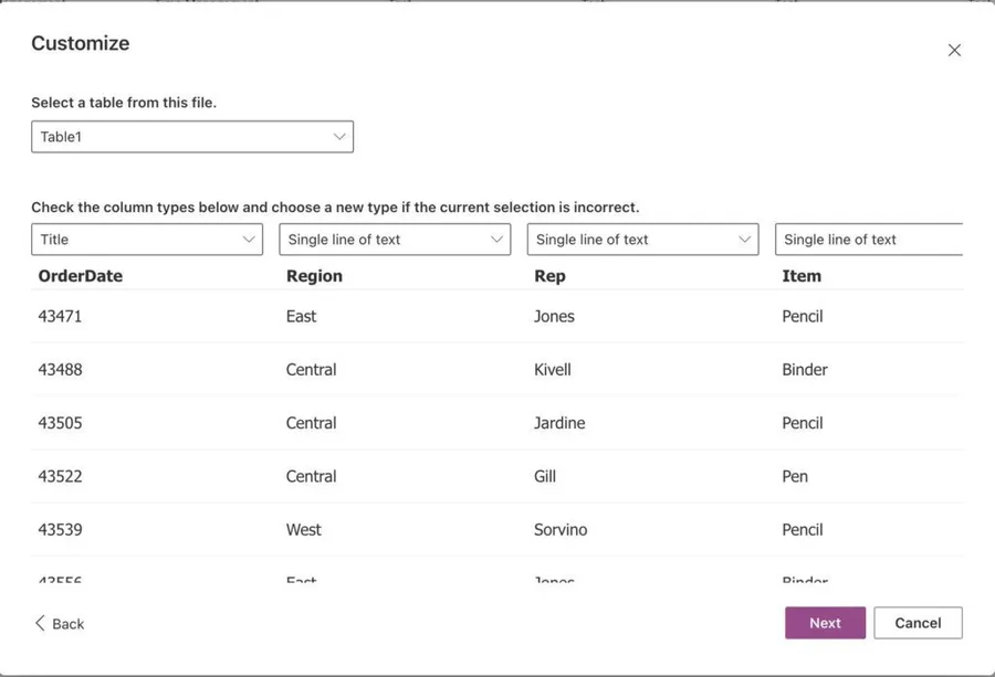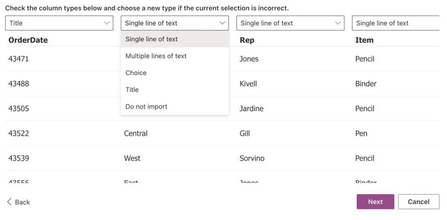 Microsoft Lists will try to “guess” the correct type of data, but you should pick and ensure that the data is stored in the correct format. This is especially important for numbers and dates. Then Microsoft Lists will create a new column with the same name as in your Excel.