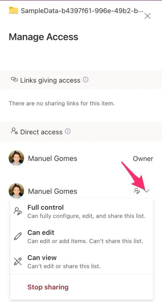 You can remove the person’s access entirely by following the same steps and use the “Stop Sharing.”