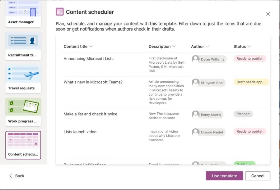 Microsoft did some of the work for us and created templates of Lists. These templates contain columns for a specific context, customization, and much more. They are fascinating and a good place to start when you’re learning.