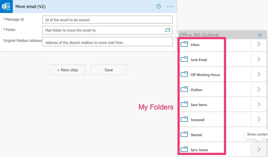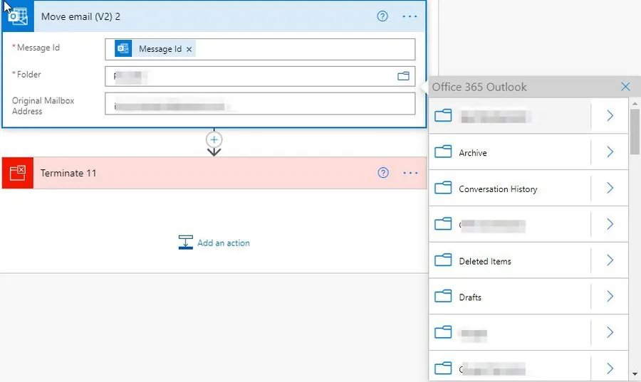 @Manuiel Pro Tip: If you want you can move emails from the shared mailbox into your mailbox. To do that, in the “Move Email” action, don’t put any email and you’ll see your own folders. If you pick one of those, then the email will be moved there. I can't get this to work. I have full access on the shared mailbox and If I try to move the mail to my one mailbox it always says. Message with Idd..... does not exist in targetmailbox ....