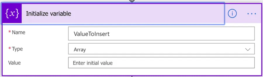 Why an array and not a string? Because Power Automate expects an array of objects, so we can use the variable to do the conversion work for use. If we used a string, we would need to concatenate a lot of characters to simulate an array, and that would be quite error-prone.