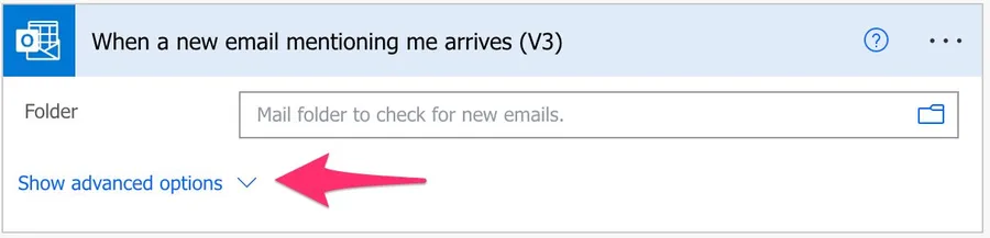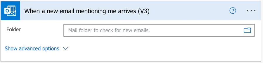If you leave it blank, Power Automate will look at all incoming emails, but you can define different folders to trigger instead of the inbox. For example, you may have a folder where you send a pre-defined answer to the person that emails you while mentioning you or send you a notification when this happens. The folder is a great way to limit catching all emails that arrive mentioning you so that the Flow doesn’t fire for all emails, so be sure to define it if possible.