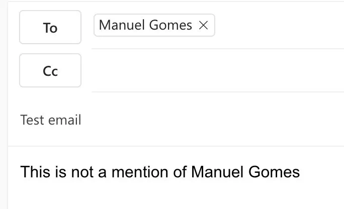 Please remember that a mention is not the same as having your name. For example, if I write the following email, it won’t be considered a mention.