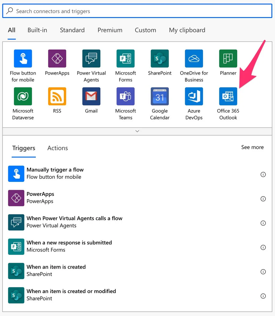 To find it, you can search for the “When a new email mentioning me arrives” trigger or go to the “Office 365 Outlook”: