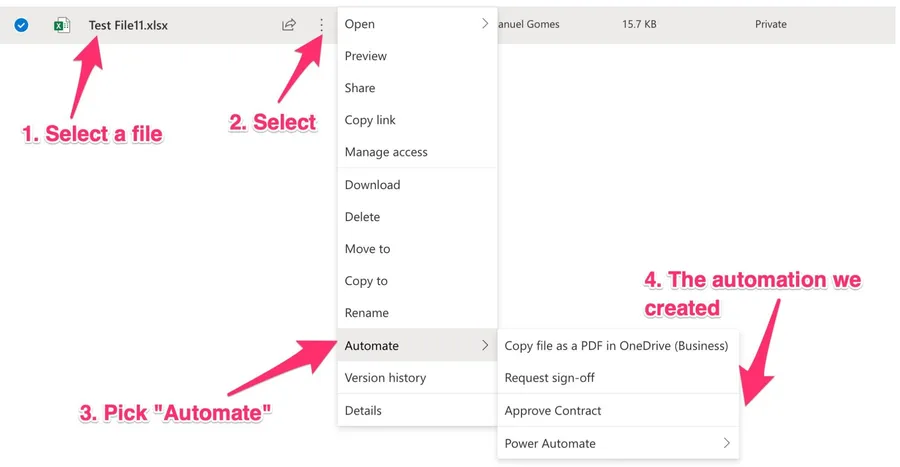 Did you know you can trigger Flows for files directly in OneDrive for Business? Let’s say that you have a contract that you want to send for approval. You need to generate a link to the file or attach it to an email, send it to the people who need to approve it, receive notifications, and merge changes. Or you press a button and let Power Automate do the work for you by using OneDrive for Business “For a selected file” trigger that catches these requests.