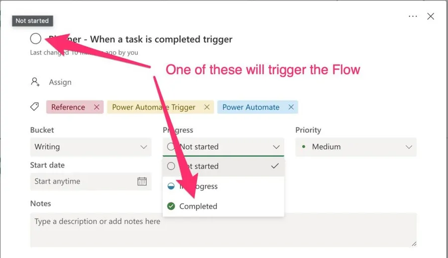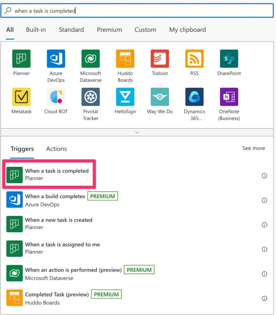 Power Automate reacts perfectly when things change in Microsoft Planner. For example, we have a trigger that fires "When a task is completed", which can be used for things like: