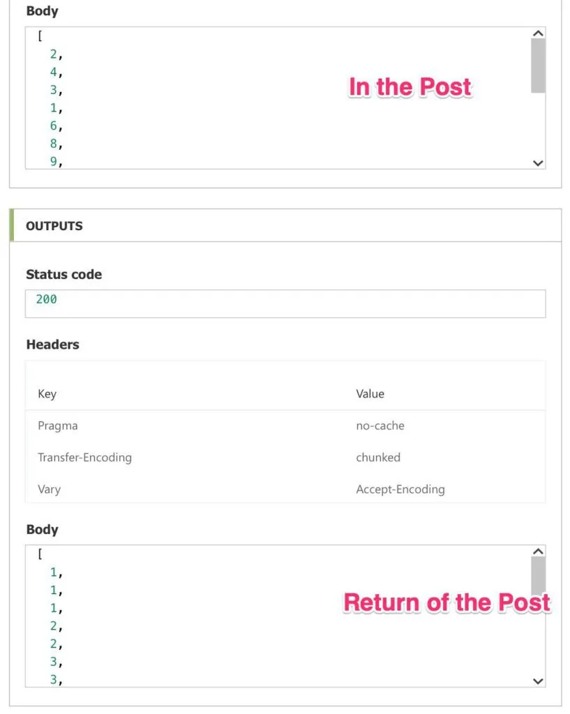 Can you provide how the Response step is configured as I didn't see where you explained that step. Do I just need to pass the SortedArray variable, or is there some JSON needed in the "Response Body JSON Schema" section?