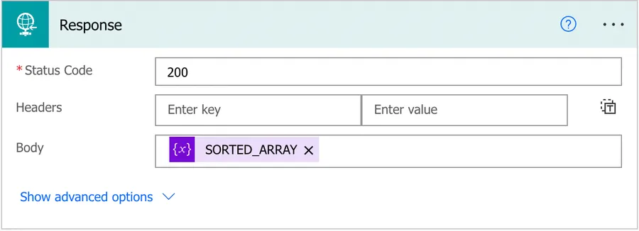 Hi Manuel, Excellent articaul!!. This is exactly what I was looking for. Can you provide how the Response step is configured as I didn't see where you explained that step. Do I just need to pass the SortedArray variable, or is there some JSON needed in the "Response Body JSON Schema" section? Thanks Ken