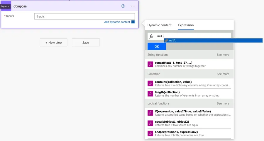 Power Automate has a lot of functions that are incredibly useful to us, and I cover a lot of them, but today I want to focus on Power Automate's special values. I bet you already used some of these special values and never noticed them. I’m talking about the “null”, “true” and “false” values. We can find them at the same place as the functions but they are not functions.