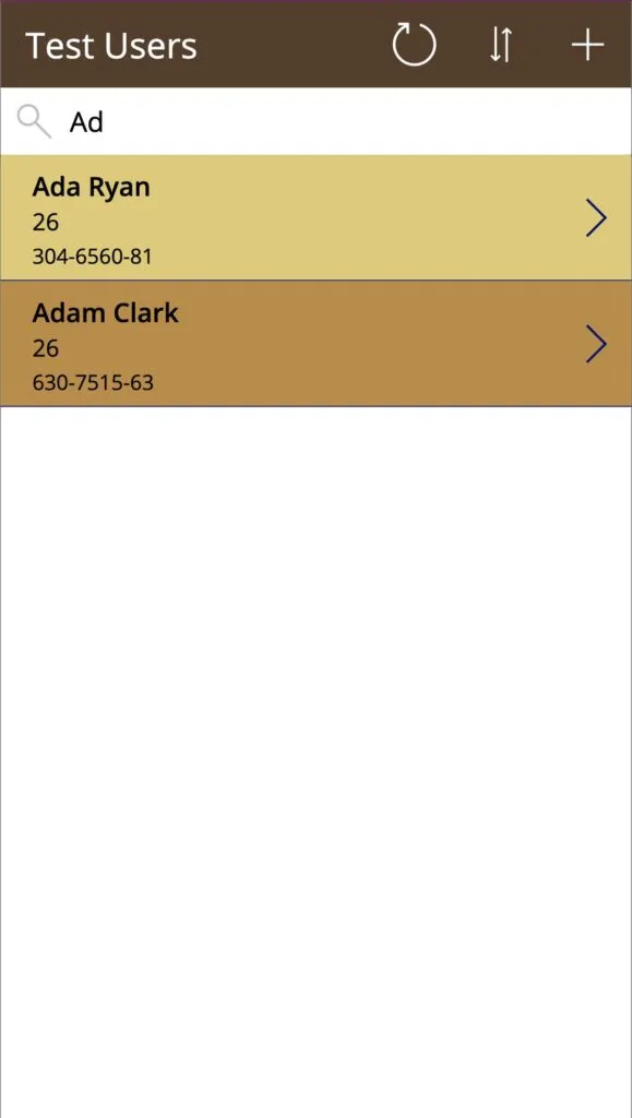 Now let's filter. We only type “Ad” and the UI refreshes automatically: