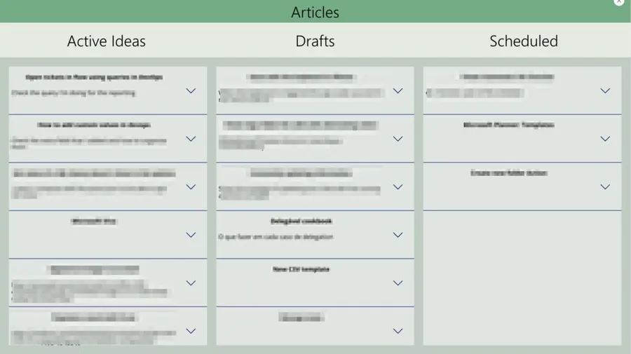 I’m building a new article manager for my ideas (this is a work in progress 😀), so I want to have the list of active ideas, my drafts, and the stuff I have already scheduled to publish.
