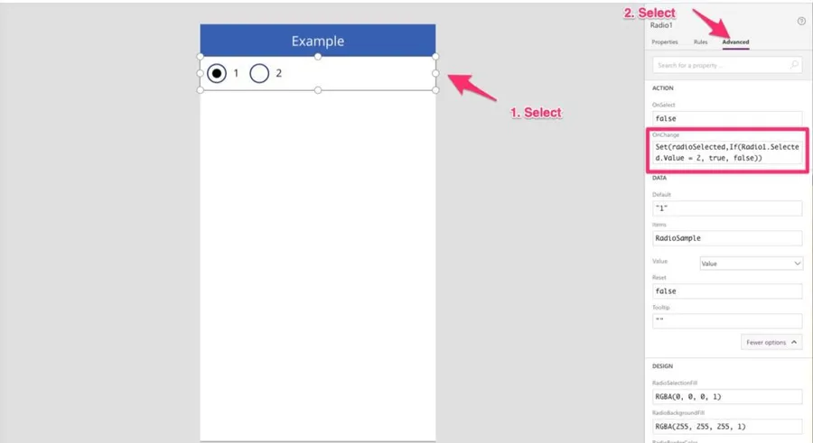 Now you understand why we want to store true or false in our variable. All you need to do is set the “Visible” property with the value of the variable, and it will update every time there's a change in the Radio.