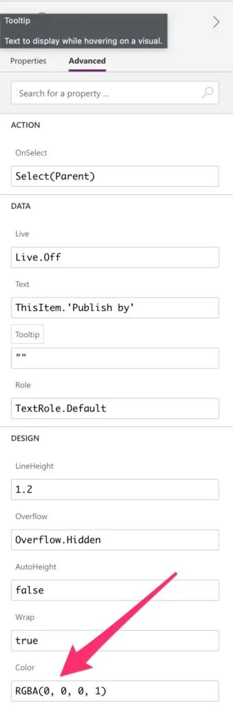 To do this, we only need to create a formula in the “Color” property. You can find it in the “Advanced” tab.