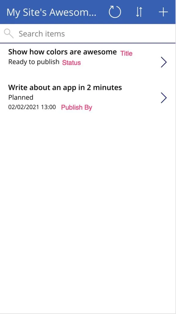 We’ll use me “How to create an app with SharePoint in 2 minutes” article for the use cases. It’s not clickbait. I timed it for you, so give it a try to have a base to start testing the concepts in this article. Here’s our starting point.