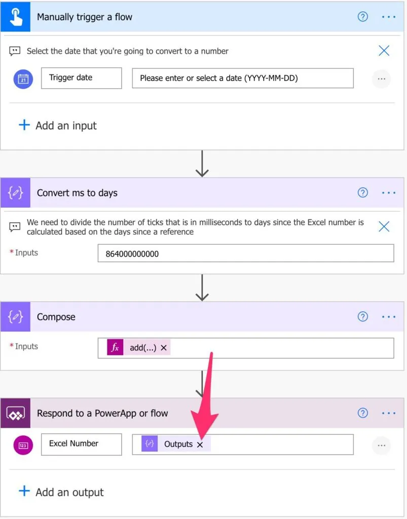 add(div(sub(ticks(triggerBody()['date']),ticks('1900-01-01T00:00:00Z')), outputs('Convert_ms_to_days')),1)