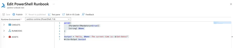 After creating the "runbook", you'll be taken to the editor where you can write your PowerShell script.