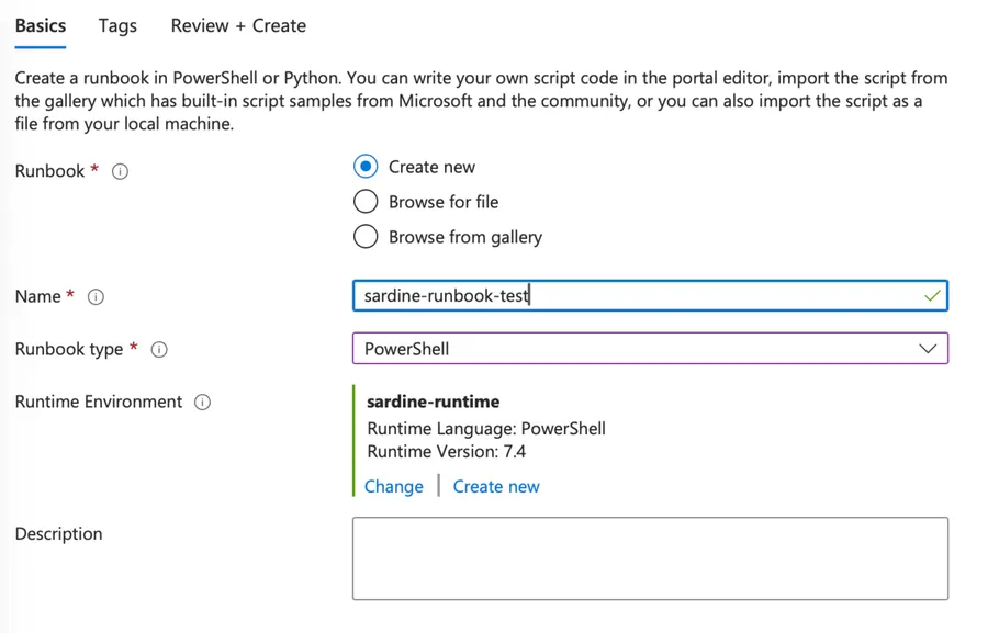 Notice that we’re re-using the “Runtime Environment” . Once created, you’ll see it under the "runbook" list.