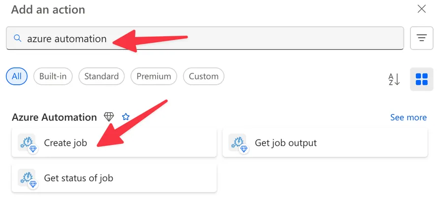 To find the PowerShell action in Power Automate, you must look for the Azure Automation connector. Here's how: