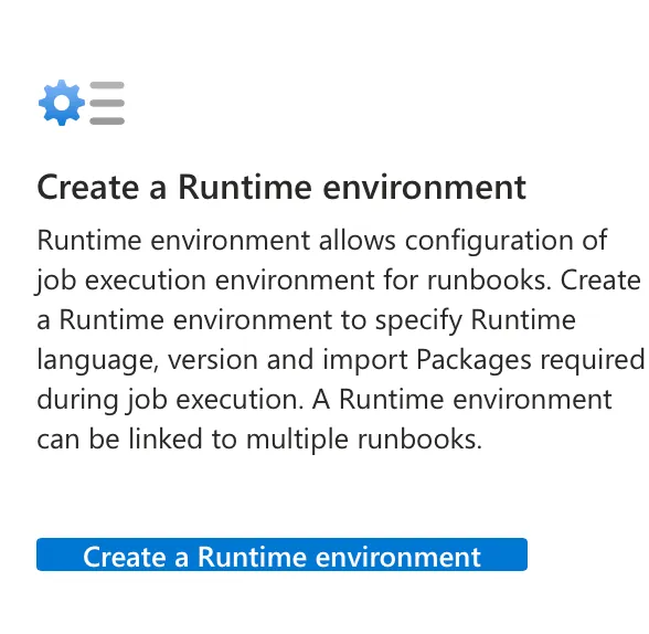 You will need a runtime environment. You can use a default one in your "runbook", but if you want to reuse some of the packages, it’s good to create one. To do it: