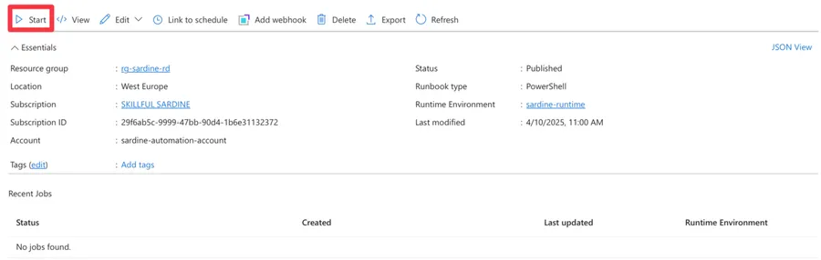 - In your Automation Account, go to "Runbooks" under Process Automation