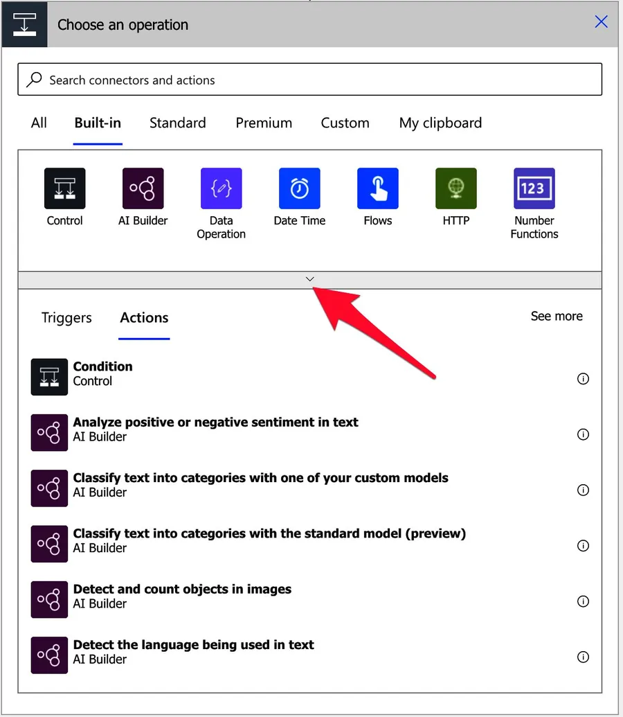 Power Automate tends to save the most common actions in the main screen, so check there before going through the complete hierarchy. Also, you can use the search to find it quickly. [/su_panel]