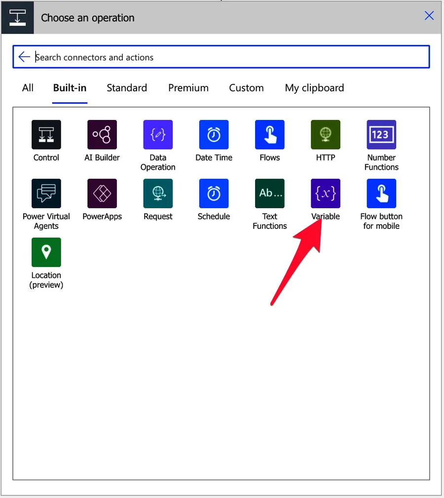 To find it, you can search for "Set variable" action or go to "Built-in":