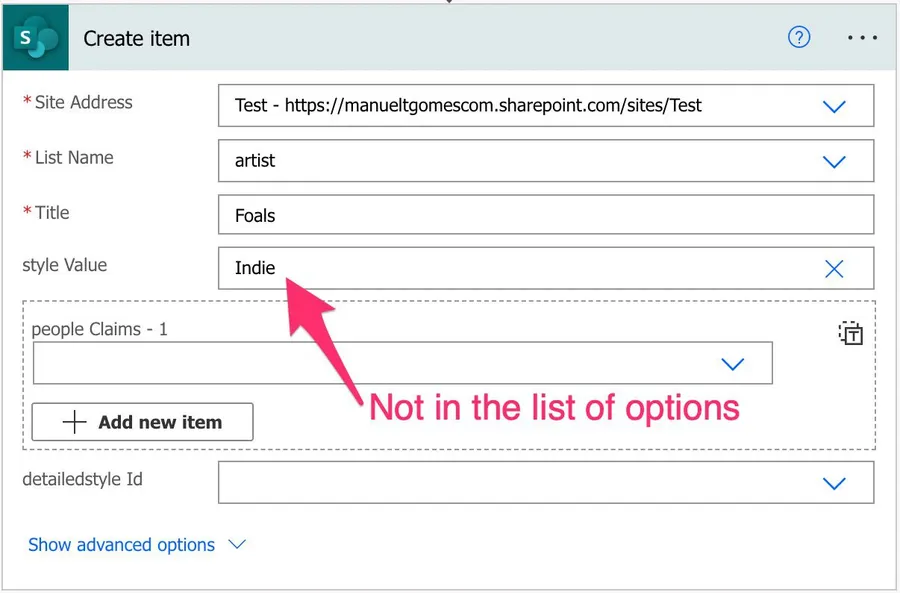 One would think that the Flow would fail, right? Mainly because the “Can add values manually” option is disabled. But here’s the final result: