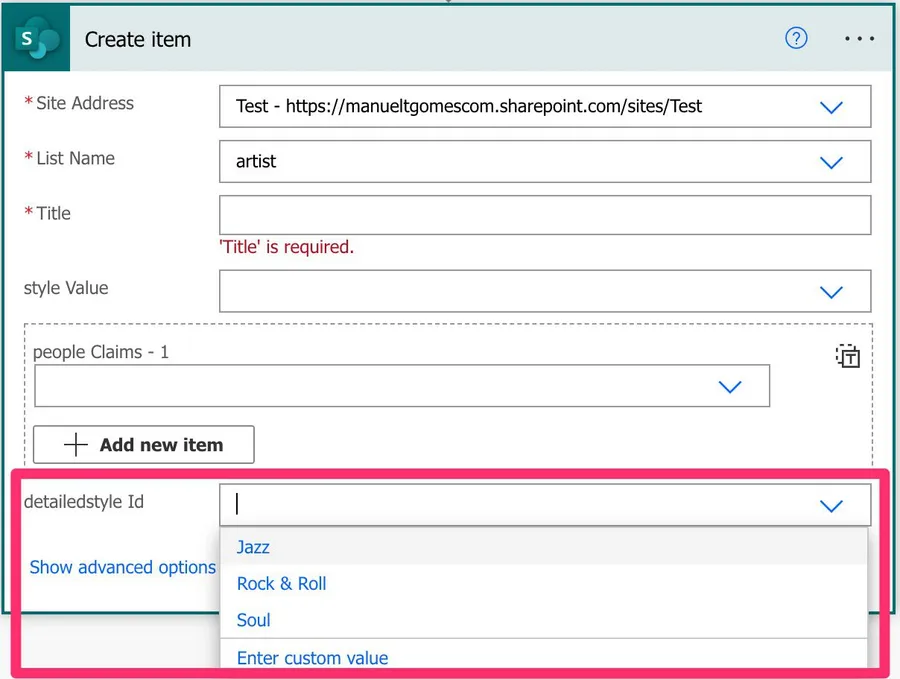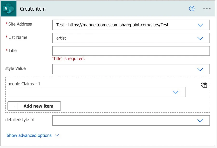 Notice that only the “Title” field is mandatory, so you know that Power Automate makes the extra validation to ensure that you always provide the necessary information.