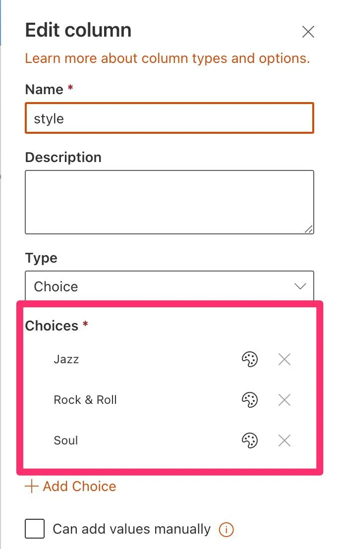 So be very careful with the “Choice” columns. The data may look the same, but if it’s not the same as the pre-defined options, you’ll get new values.