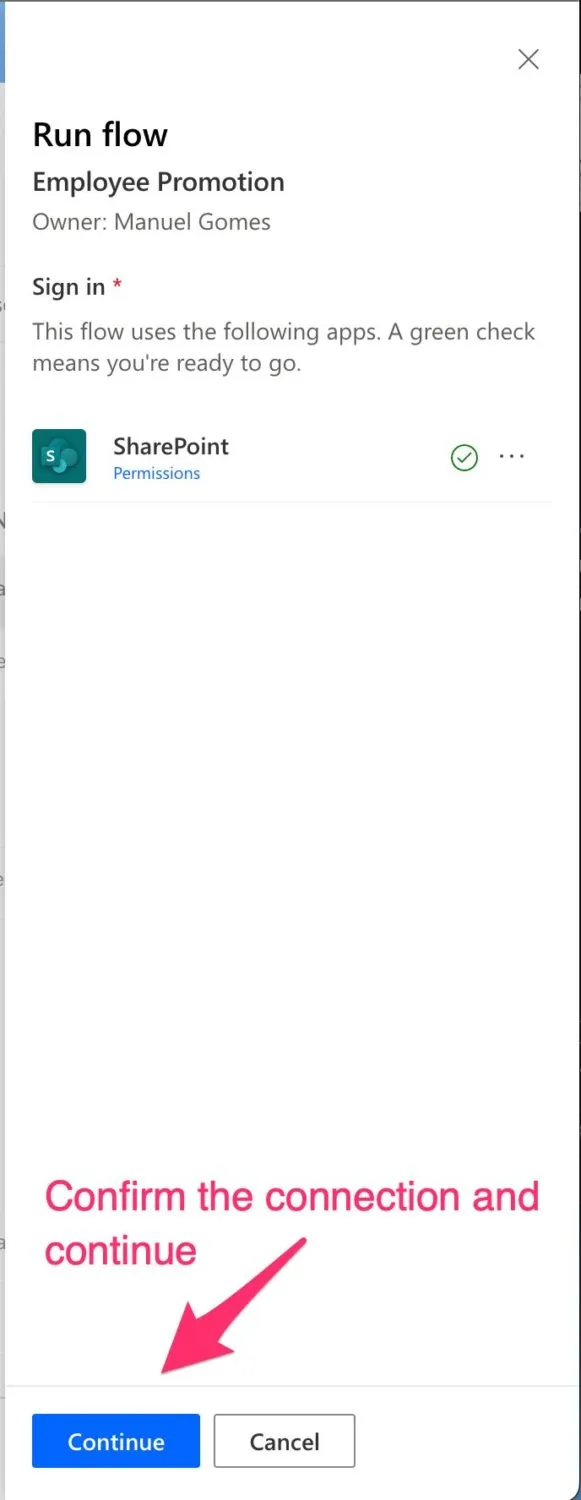 SharePoint did all the work in the backend, and it’s already displaying the Flow for us to run. No configuration is needed on the SharePoint side.