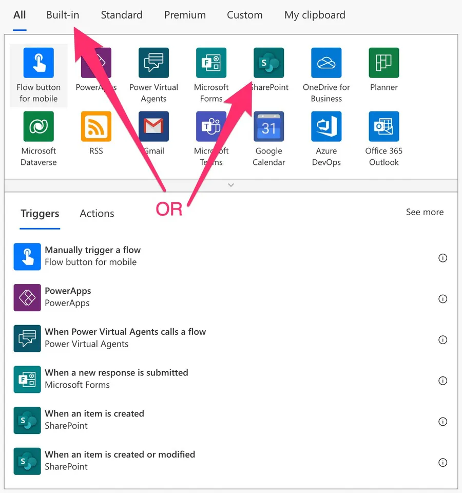 Power Automate tends to save the most common triggers in the main screen, so check there before going through the full hierarchy. Also, you can use the search to find it quickly. [/su_panel]