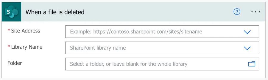 Don’t think of the “When a file is deleted” trigger as a recovery mechanism. It will fire after the file's deletion, so you should use it for notification actions, for example, not recover the file. Remember that files can be deleted automatically using other actions like SharePoint’s “Delete file” action, for example, so if it’s essential to know when something happens, this trigger can help you do that.
